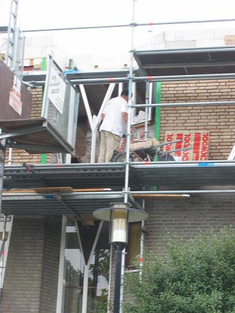 Hieronder zie je hoe het laatste raamkozijn wordt geplaatst.